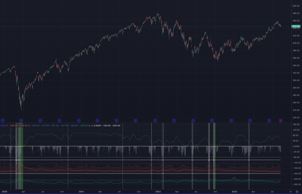 This is an Indicator that combines the High Low Index, McClellan Oscilator, VIX, and Put to Call Ratio into 1 Indicator. This way you do not need to use 4 indicators to get the same result.